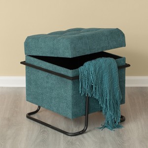 Product Name: Fabulaxe Square Fabric Storage Ottoman with Black Metal Frame, Blue