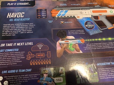 Not only is it a powerful gel bead blaster, Havoc is a smart blaster with Bluetooth connectivity. Receive automatic over-the-air updates and improvements everytime you open the free Faction Battle System app. Take your blasting game to a whole new level! Experience the thrill of a video game brought to life in the real world. Bring structure to your game with objectives you and your teammates must accomplish to win. Every real world action is tracked by the Faction Battle Server with GPS. The technology is complex, but your experience is seamless and easy. Create and configure multi-player games in seconds following a few simple on-screen steps. The Faction Battle System manages all aspects of the game so you can focus on winning!