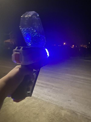 This is such a fun set and I love how the gun is setup. I like that the orbies are on top of the gun making it easier to use. My husband and friends came over to play tag with the guns and we had a blast! This set comes with two targets and the orbies in blue and in glow in the dark green. I love how easy it was to set up the guns. We had the orbies in water for a few hours and then had our fun! The guns colors on the lights can change to to have fun with teams. They also have an area where you can talk to your team members. The guns works amazingly! The orbies do not hurt on contact. I love that there are safety goggles for the little ones to be safe. This is a fun set that kids and adults will love!