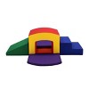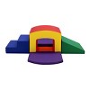 - Five-piece set includes curved-top tunnel, ramp slide, steps, and side padding