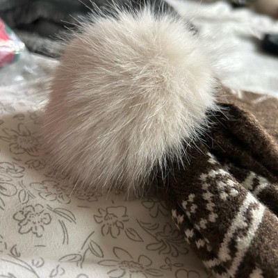 [This review was collected as part of a promotion.] This hat is super cute but not overly thick if you are looking for a super warm hat. It is brown and cream colored and has a cute fuzzy pom pom on top. The cuff brim is secured with a stitch so it will stay in place. The hat is not too tight but is quite snug. This would be a great goft item for a friend who loves martinis.
