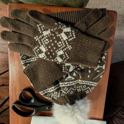 Fair Isle Pattern Beanie & Gloves 2pc Set - Universal Thread™ Brown