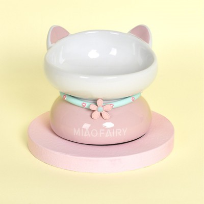 Fairela™ - Elevated Ceramic Cat Bowl – Anti-Slip Raised Pet Feeder for Cats & Small Dogs, Ice Cream Style Design,Yellow