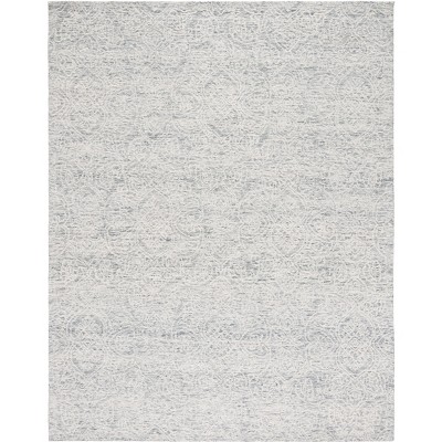 Super nice rug. I got it at 70% off!!!! Extremely soft and the muted colors are really great! It’s the perfect pop of color. I’d say the base is close to a denim blue compared to gray but overall still super pretty! Packaging was great, it was tightly rolled in plastic with hair bonnet like covers on each and to keep the rolled openings covered. Also came a whole week early!