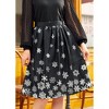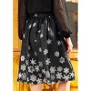 Perfect for an instant, festive touch to your winter wardrobe, we bring you this fun and fashionable A-line skirt in a sheen-y black. Boasting a high-waisted silhouette with gathering at the waistband that adds fullness throughout this flowy A-line skirt, what really makes this separate irresistible is its exclusive, silvery gray and white print of falling snowflakes that gather at the border of its hem for an oh-so charming look. Layer this darling skirt with your favorite tees and elegant, tailored tops for a variety of retro-chic ensembles.