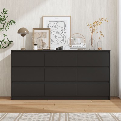 Materials: Constructed from high - quality engineered wood with a matte black finish, ensuring durability and a sophisticated look. The hardware includes smooth - gliding drawer slides for easy operation.
