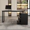 - This desk is equipped with a variety of storage solutions, including drawers and open shelves, offering users the flexibility to store books, files, office supplies, and more. Its modular design allows it to adapt to different storage requirements. Furthermore, the desk features an L-shaped design, which provides additional workspace for multitasking.