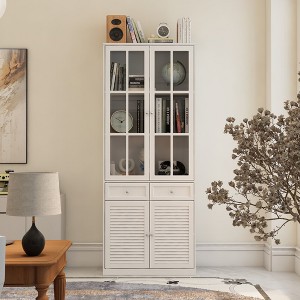 - Dual - Door Design:Upper glass doors allow you to display books, decor, or collectibles while keeping them dust - free. Lower louvered doors provide hidden storage for items you want out of sight, balancing display and organization.