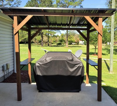 Famapy Cedar Wood BBQ Gazebo with Galvanized Steel Roof and Dual Bar Shelves for Patio & Garden