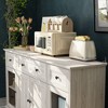 - Abundant Storage Options:Features three drawers and three cabinets . This variety allows for organized storage of different items, from cutlery and table linens in drawers to dishes and appliances in cabinets,adjustable shelves let you customize the space to fit items of various sizes.