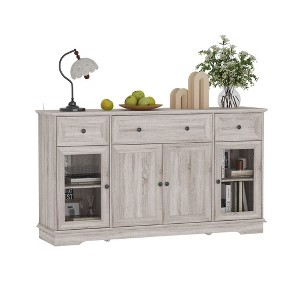 Famapy Gray 4 Doors Sideboard Buffet with 3 Storage Drawers