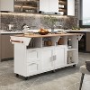 Dimensions: When unfolded, the countertop provides ample workspace. It has a compact design that can be easily moved around the kitchen. The island includes cabinets and drawers for storage, with adjustable shelves inside the cabinets to accommodate items of different sizes.