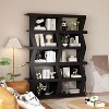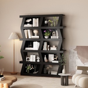 - The bookshelf boasts a striking zig - zag structure that stands out as a focal point in any room. This distinctive design adds a modern and artistic touch to your decor, making it a conversation starter.