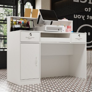 Famapy Reception Desk Lockable Drawer Computer Desk Workstation with USB Port White