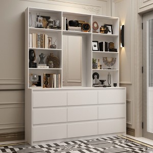 Elevate your entryway with this exquisite entryway display and storage cabinet, a perfect combination of stylish design, ample storage, and functional details. Featuring a sleek white finish and a central mirror, it adds a touch of elegance while keeping your entryway organized and clutter - free.|