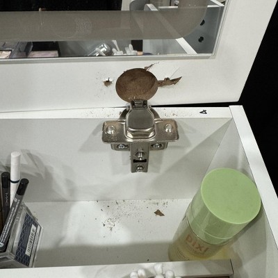 I was excited to get this vanity, the price was not cheap, but the qualityis , it took 2hrs to put together and within a few days it the hinge that hold the mirror broke. not a good purchase, stay away
