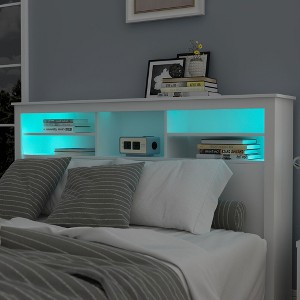 Famapy White Full/ Queen Size Headboard,App-Controlled LED Lights,Adjustable Shelves,Smart Bedroom Storage Solution