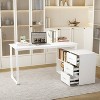 - This desk is equipped with a variety of storage solutions, including drawers and open shelves, offering users the flexibility to store books, files, office supplies, and more. Its modular design allows it to adapt to different storage requirements. Furthermore, the desk features an L-shaped design, which provides additional workspace for multitasking.