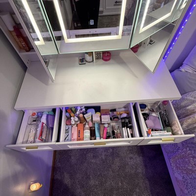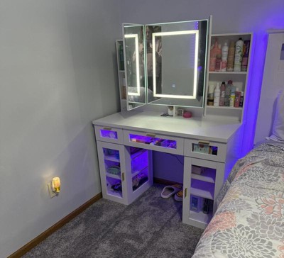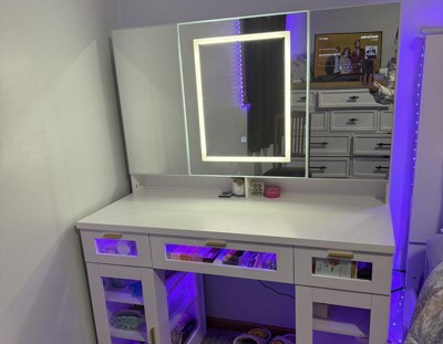 Famapy White Large Makeup Mirror Visual Storage Adjustable Light Vanity Table