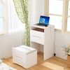 - Spacious Storage Drawers: Comes with multiple drawers, and the top drawer features square compartments (ideal for organizing small items like jewelry, makeup brushes, or earrings) for neat and targeted storage. Plus, there's a movable stool (with its own storage) adding convenience and extra space, serving as a comfortable seat.