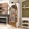 Famapy White Vertical Storage Cabinet Embossed Patterned Arched Glass Doors Bookshelves Display Cabinet Pantry Side Cabinet