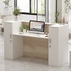 This modern white reception desk is an ideal choice for various business settings, offering a blend of style and practicality. Its clean white finish, combined with light wood - grain accents, gives it a contemporary and inviting look that can enhance the aesthetic of any store, office, or service area.