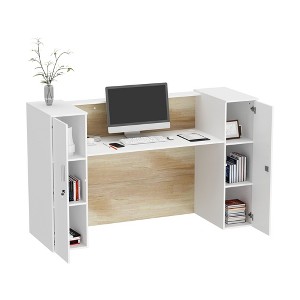 With overall dimensions of 70.9 inches in width, 23.6 inches in depth, and 43.3 inches in height, the reception desk is substantial enough to make a statement while still fitting well in different spaces. The sturdy construction ensures it can withstand daily use in a business environment.