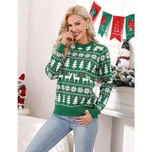 Family Christmas Sweater Reindeer Snowflake Pattern Crew Neck Holiday Pullover Knitwear - 1 of 4