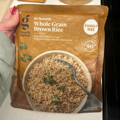 This Family Size Microwavable Whole Grain Brown Rice from Good & Gather™ is a hearty, convenient pantry staple for the whole household. It has 49 grams of whole grain per serving*, no artificial colors, flavors, or preservatives, and is ready in the microwave in just 90 seconds — a great pick for busy families searching for the perfect dinner complement.