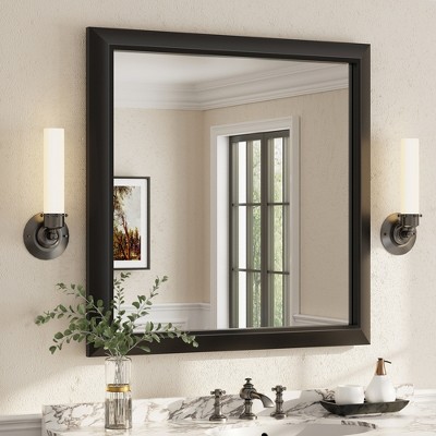FAMYYT Aluminum Framed Wall Bathroom Vanity Mirror in Glossy Black