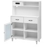 - Functional Storage SolutionsDouble Drawers: Perfect for organizing utensils, dinnerware, or valuables. Glass-Door Compartment: Provides clear visibility and dust-free protection for frequently used items like snacks or small appliances. Open Shelving: Ideal for displaying decorative pieces or everyday essentials, maximizing convenience and style.