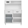 Modern Minimalist DesignThe white cabinet features a sleek, clean-lined silhouette with two pull-out drawers, a glass-door storage compartment, and open shelving. Its monochrome palette contrasts strikingly with the dark marble-textured wall background, creating an elegant and contemporary aesthetic ideal for modern living spaces.Functional Storage SolutionsDouble Drawers: Perfect for organizing utensils, dinnerware, or valuables. Glass-Door Compartment: Provides clear visibility and dust-free protection for frequently used items like snacks or small appliances. Open Shelving: Ideal for displaying decorative pieces or everyday essentials, maximizing convenience and style.Attention to DetailA subtle magnifying glass effect in the bottom-right corner highlights the cabinet¡¯s craftsmanship, emphasizing the smooth texture and precise fit of the drawers and shelves.Space-Optimized & VersatileSlim and compact (61cm x 23cm x 115cm), it adapts effortlessly to small kitchens, dining areas, or corners. Its minimalist design blends seamlessly with both kitchen islands and standalone wall units, offering practicality without sacrificing visual appeal.