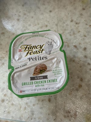Show your fancy feline how much she’s loved with the irresistible flavor of Purina Fancy Feast Petites Grilled Chicken Entrée With Rice In Gravy gourmet wet cat food. Made by Fancy Feast, the number 1 cat food brand (as of April 2025 sales), each pate with gravy tray breaks apart into two perfectly sized containers that snap apart into fuss-free tubs to deliver just the right amount of cat wet food. Each serving of Fancy Feast Petites Pate is made fresh with real chicken and has no artificial preservatives or colors. Serve a gourmet dish of Purina Fancy Feast Petites wet cat food pate and delight your furry connoisseur’s senses with the purr-worthy poultry flavor she’s been waiting for.