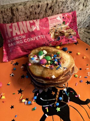 [This review was collected as part of a promotion.] These fancy rainbow baking confetti are so fun! They jazz up any recipe. You can put them in pancakes, on top of an ice cream sundae, in yogurt, or in sugar cookies, among other things. They are very tasty and colorful, and my kids have enjoyed them.