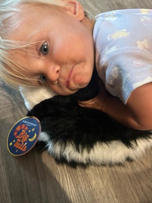 [This review was collected as part of a promotion.] This skunk is soft and cute! My daughter loves it! She is one and able to carry it around. The skunk tail does shed a bit so have to watch that with her. Other than that we approve!