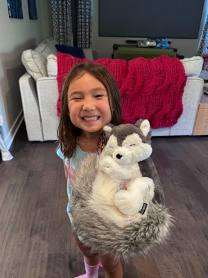[This review was collected as part of a promotion.] Cutest husky toy ever! My daughter adores it and she has a small husky that she hides in its tail. It is nice and soft and it is good quality. You can see how happy she is from the picture!
