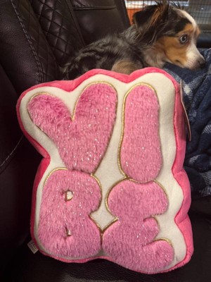 [This review was collected as part of a promotion.] The 10" FAO Schwartz Vibe Pillow is absolutlely adorable. The pink letters stand out nicely against the white background. The pillow has the right amount of filling. It holds its shape while still being soft and squishy. It's perfect as a small accent pillow or room decoration to give any room a fun personality vibe.
