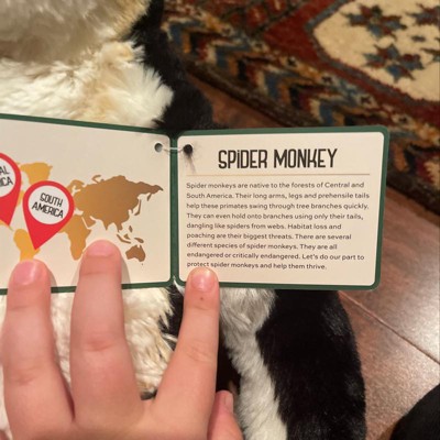 So the spider monkey is very cute. I got it because I wanted the car telling you all about it. The card is very cute and since they live in Central America and South America, I couldn’t find the snow leopard. That’s the real one I want, but I just decided to grab this one off the shelf in East Hanover go and get the flask few ones. It’s the best monkey ever.