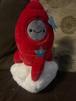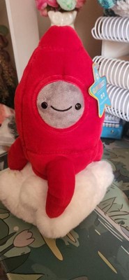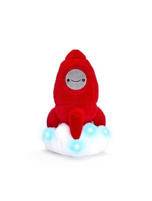- Light-up 11.5” space rocket plush with smiling face and cloud base