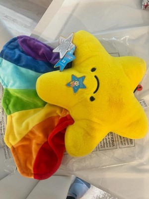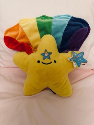 - Soft and snuggly 9” star plush with rainbow tail