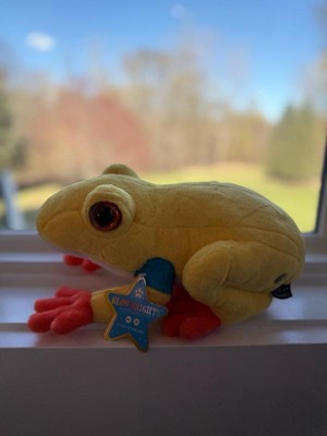 [This review was collected as part of a promotion.] I received the Sound Dar 10 inch Plush Frog by FAO Schwarz. For 10 inches it's a pretty big frog. I love the bright yellow material as the body and then there are functional lights. Lights that's bright and draw your attention