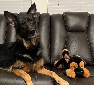 [This review was collected as part of a promotion.] Ranger is adorable! He is super soft. He comes with his own adoption papers, along with an about me and his birthday. His coloring almost matches our very own German Shepherd. The stitching is great quality and feels like it’s made to last.