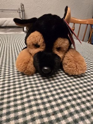 [This review was collected as part of a promotion.] This toy plush lying sweet German shepherd 20-inch pup is very soft as well as cute. Great craftsmanship and good stitching. My boys love it and sleep with it often