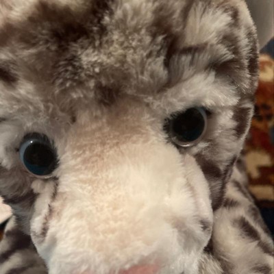 The snow leopard is very soft nice and cuddly. It’s very colorful has love spots. It’s very beautiful. We love snowball and that’s what we named him snow ball