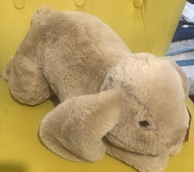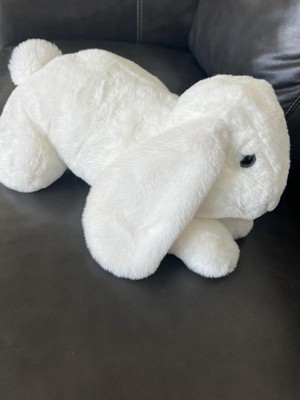 [This review was collected as part of a promotion.] The size of this is larger than I expected. It is made well and seems to be weighty for a plushie but is also so soft and comfortable. It also says that it has an anti mold chip to prevent the toy from molding which is amazing in case you need to put toys in storage. The packaging kept the animal protected. It is definitely a must have for anyone who loves rabbits. It is perfect for Easter coming up.