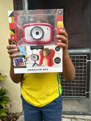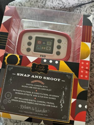 Give your little content creator the tools they need to succeed they want with the FAO Schwarz Creator Kit! Its durable, child-friendly construction features all the components of a traditional camera all in a simple design they'll love to use! Let your children film videos and snap pictures with the camera's easy to use interface! Activate the camera's built-in picture and video filters to produce incredible works of art that are only limited by your child’s imagination. Place the included green screen fabric as a backdrop and watch the magic of Hollywood happen right in your home! When your child is ready to import their images and videos to the computer, connect the provided USB cable to the camera's port or put in an SD card for hassle-free transfer of all their content!
