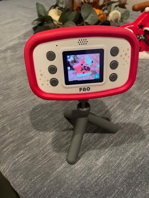 [This review was collected as part of a promotion.] The FAO Schwarz kids camera was very durable with a nice red cases. Overall a good camera for kids. Good case to protect it and it has a tripod also. Easy to hold and to take pictures. Good camera case. Takes good photos. Requires batteries. Comes with a green screen cloth also. Very simple design with only a few buttons. Made for small hands to be able to hold and take pictures. Overall fun to use.