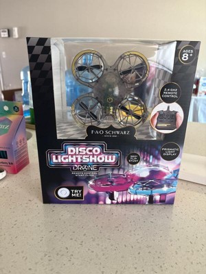 [This review was collected as part of a promotion.] I received the FAO Schwartz drone and gave it to my daughters the second they got it they opened it right away. It definitely gave them entertainment they stated flying it around the house and then eventually went outside to use it. It is easy to control and there is no set up required besides putting batteries in the controls. I would recommend this product also the light show is fun and bright