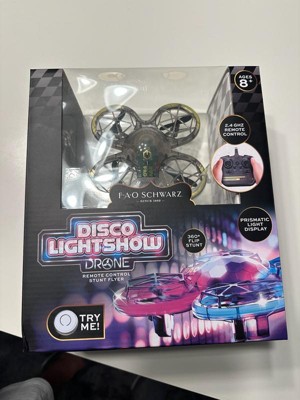 Light up the skies with the FAO Schwarz® Disco Lightshow Drone. This compact indoor drone features brilliant multi-color LEDs that turn every flight into a vibrant light display. Designed with assisted auto takeoff and landing, it’s easy for beginners to control while still offering high-flying fun for experienced pilots. Perform 360° flips at the press of a button and switch between two speed modes depending on your skill level. The included remote and USB-C rechargeable battery make it simple to get started. Whether flying solo or showing off for friends, this drone delivers dazzling fun in every flight.