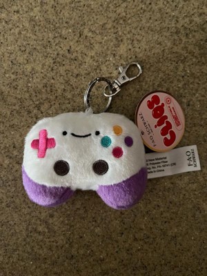 Level up your accessories with the FAO Schwarz Cliqs Plush Controller Keychain. This soft, huggable mini keychain is shaped like a classic game controller, complete with colorful embroidered buttons and a friendly smile. Clip it to your keys, backpack, or purse for an instant pop of personality that gamers and non-gamers alike will love. The shiny gold hardware adds a playful yet polished touch, making this little accessory as stylish as it is fun. As part of the collectible FAO Schwarz Cliqs line, the controller keychain is perfect for mixing, matching, and trading with friends. Whether you’re showing off your gamer side, hunting for the next must-have character, or simply adding fun to your everyday essentials, this plush controller keychain is a winning choice.